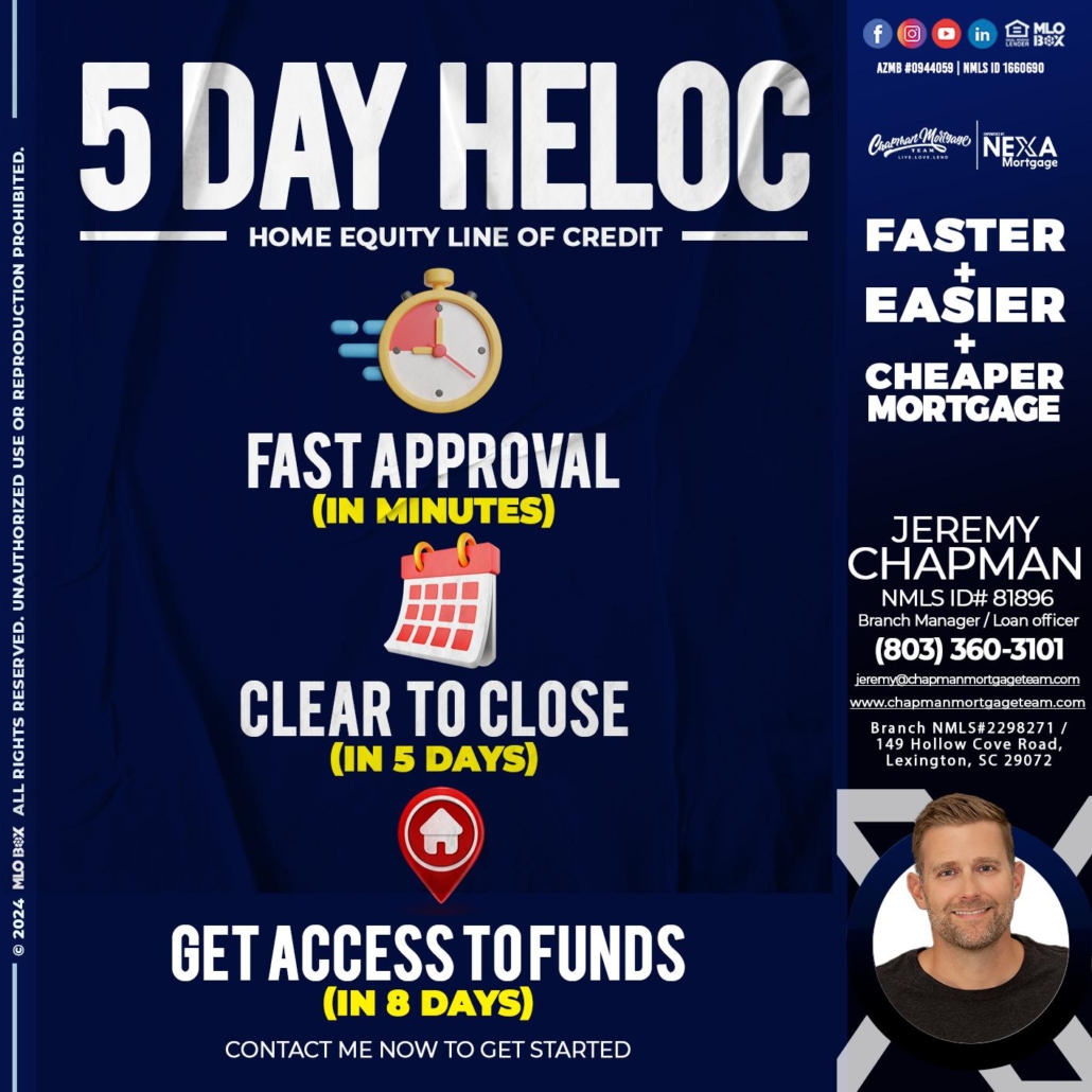 Hi, my name is Jeremy Chapman. I’m a Loan Officer with NEXA Mortgage LLC., offering personalized mortgage solutions, fast customized quotes, great rates and service with integrity.