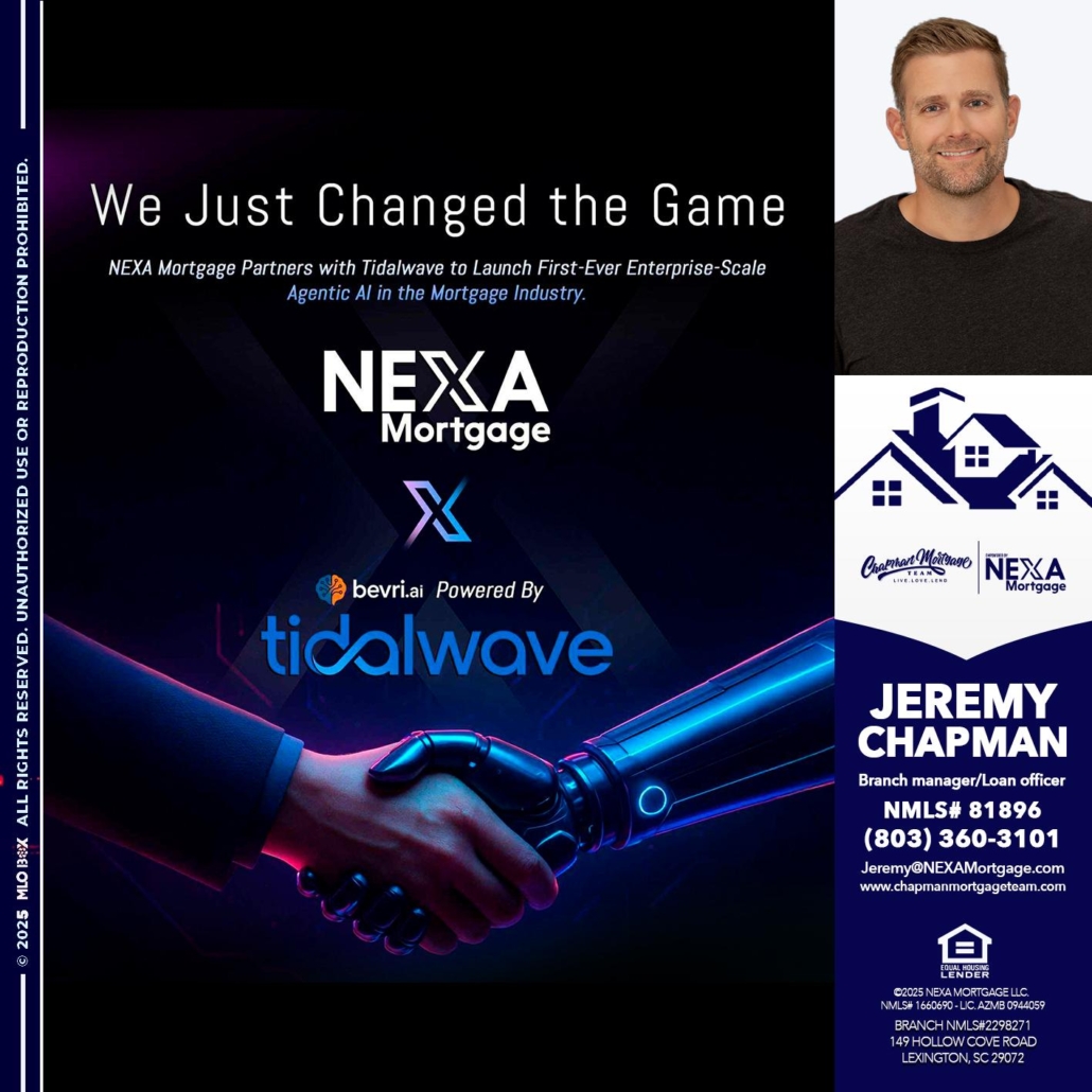 Hi, my name is Jeremy Chapman. I’m a Loan Officer with NEXA Mortgage LLC., offering personalized mortgage solutions, fast customized quotes, great rates and service with integrity.
