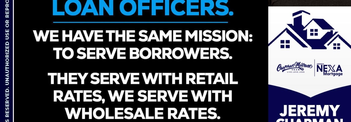 Hi, my name is Jeremy Chapman. I’m a Loan Officer with NEXA Mortgage LLC., offering personalized mortgage solutions, fast customized quotes, great rates and service with integrity.